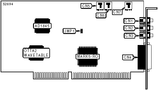 Audio line in, Audio line out, CD-ROM connectors (2), Microphone, MIDI/game port, TAD connector, TV tuner/IDE/Sony CD-ROM audio connector