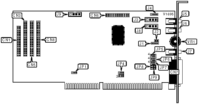 CD-ROM audio (4), CD-ROM interface (4), game/MIDI port, line in, microphone in, PC speaker in, PC speaker out, speaker out, volume, wavetable