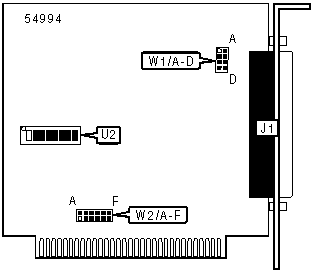 A total of 255 base address settings are available. The switches are a binary representation of the decimal memory addresses. U2/8 is the Most Significant Bit and switch U2/1 is the Least Significant Bit. The switches have the following decimal values: U2/8=32768, U2/7=16384, U2/6=8192, U2/5=4096, U2/4=2048, U2/3=1024, U2/2=512, U2/1=256. Turn off the switches and add the values of the switches to obtain the correct memory address. (Off=1, On=0)