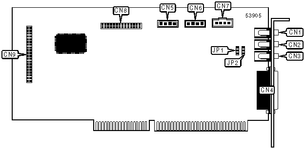 Line in, microphone in, speaker out, game/MIDI port, CD-ROM interface, wavetable connector, audio in CD-ROM (3) |