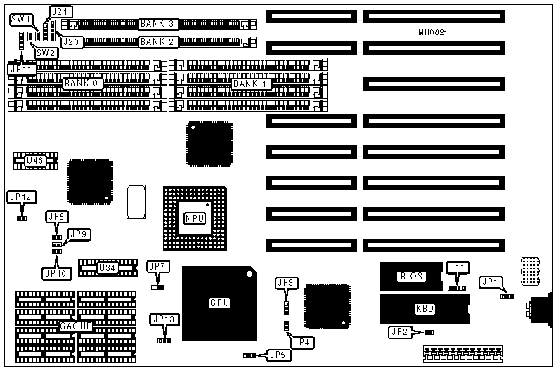 Note:36-bit SIMM banks 2 & 3 are not installed on some board versions.