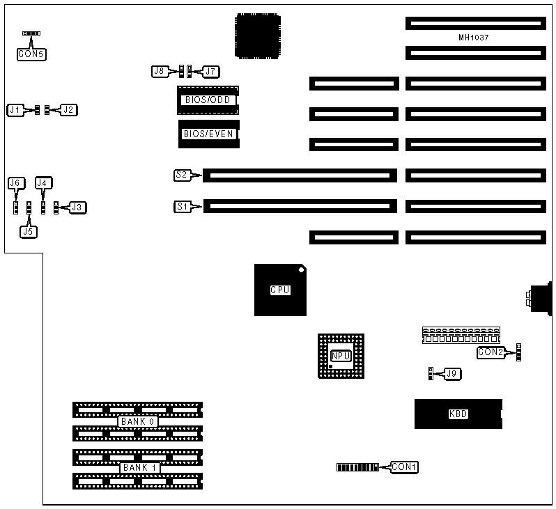 Note 1 :Use this setting when 2MB is installed on board and in slot S1 and S2.Note 2 :Use this setting when 2MB is installed on board and in slot S1, and 8MB is installed in slot S2. | ||||