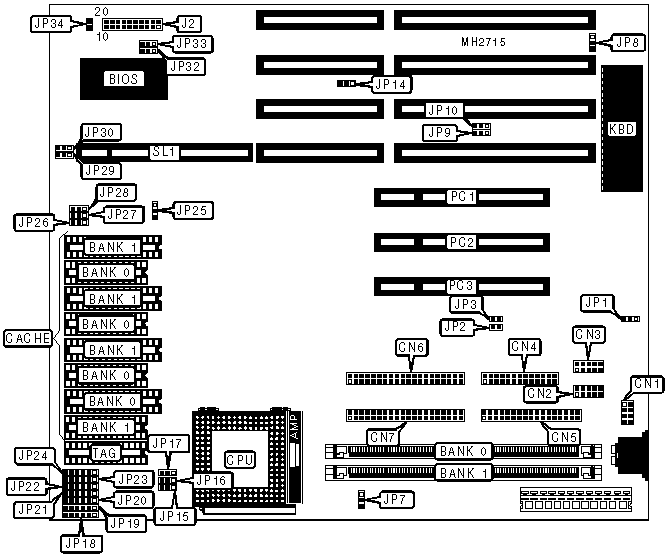 32-bit VESA local bus slot, 32-bit PCI slots (3), floppy drive interface, green PC connector, IDE interfaces (2), parallel port, PS/2 mouse interface, serial ports (2)