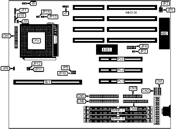 32-bit PCI slots (3), floppy drive interface, green PC connector, IDE interfaces (2), parallel port, serial ports (2) VRM connector, cache slot |