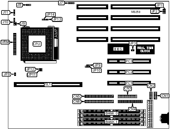 32-bit PCI slots (3), floppy drive interface, green PC connector, IDE interfaces (2), parallel port, serial ports (2), VRM connector, cache slot
