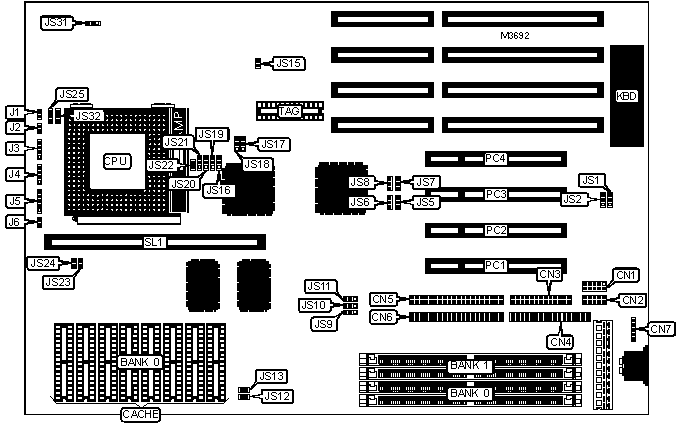 32-bit PCI slots (4), floppy drive interface, green PC connector, IDE interfaces (2), parallel port, PS/2 mouse interface, serial ports (2), cache slot |