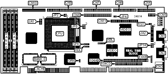 Floppy drive interface, green PC connector, IDE interfaces (2), Ultra Wide SCSI interface, SCSI II interface, parallel port, PS/2 mouse port/keyboard, serial ports (2), VGA port, PC104 connectors (2), flat panel connector |