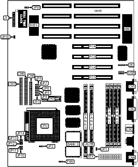 32-bit PCI slots (4), floppy drive interface, green PC connector, IDE interfaces (2), parallel port, PS/2 mouse port, serial ports (2), IR connector, USB connector, ATX power connector |