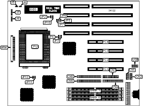 Note: Board accepts EDO memory. Banks are interchangeable. | ||