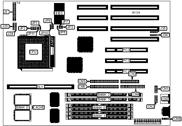 Note: Board accepts EDO memory. Board also accepts x 32 SIMMs. | ||