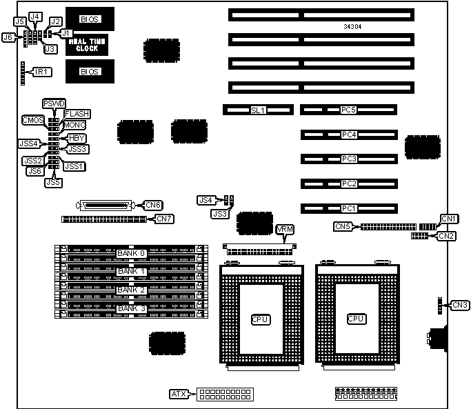 Note: Board accepts EDO memory. Board also accepts x 32 SIMMs.