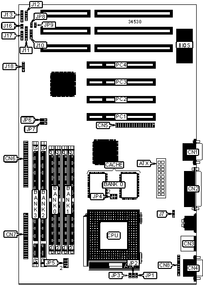 Note: Board accepts EDO memory. Banks are interchangeable. | ||