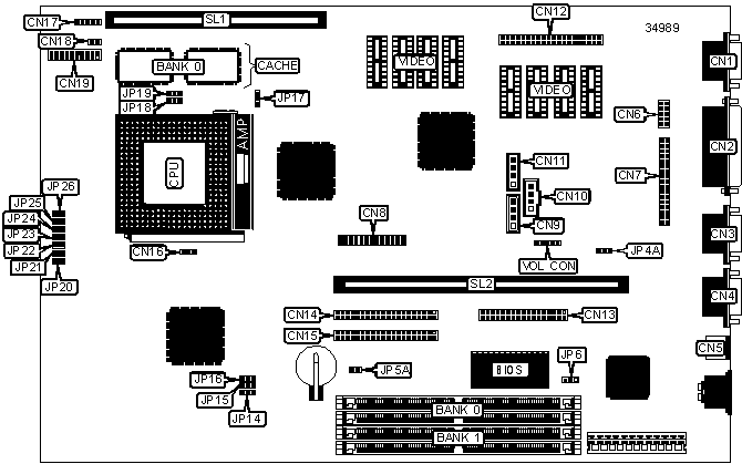 Note: Board accepts EDO memory. Banks are interchangeable.