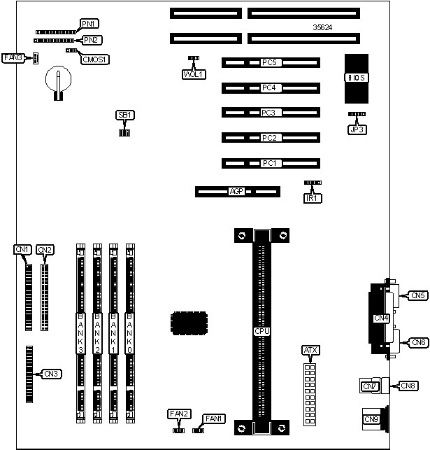 Note: The board accepts up to 512MB SDRAM or 1GB EDO memory.
