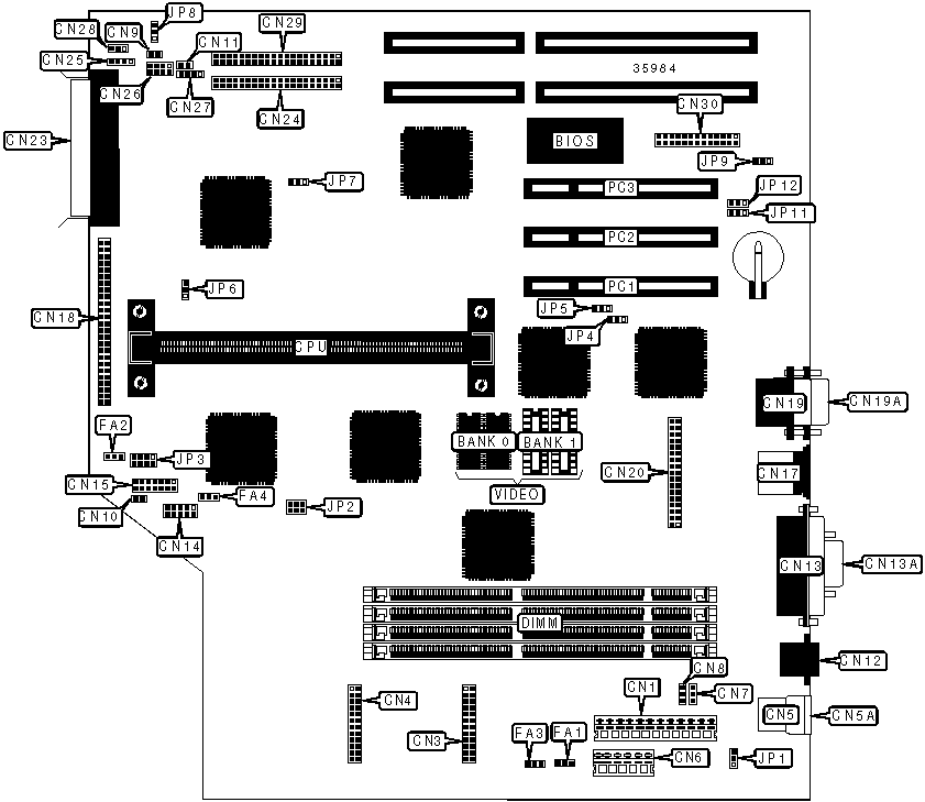 32-bit PCI slots (3), Ethernet 10BaseT connector, floppy drive interface, IDE interfaces (2), SCSI-2 interface, Wide SCSI interface, parallel port, PS/2 mouse port, serial ports (2), VGA feature connector, VGA port, USB connectors (2), ATX power connector |