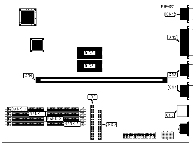 Note: The simplest memory configuration is shown to conserve space. In practice, any bank may be filled with any type of SIMM, as long as Bank 0 is filled first, Bank 1 second, etc. and the total memory is less than 32MB.
