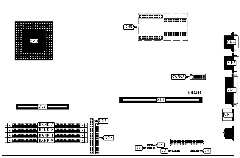External cache card, floppy drive interface, IDE interface, parallel port, PS/2 mouse port, serial port, VGA port