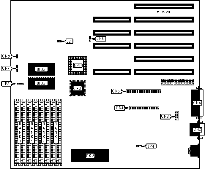 Floppy drive interface, IDE interface, parallel port, serial ports (2)
