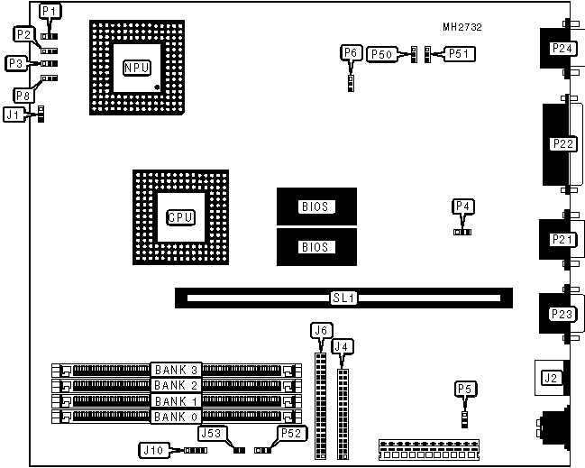IDE interface, riser card slot, floppy drive interface, parallel port, PS/2 mouse port, serial ports (2), VGA port |