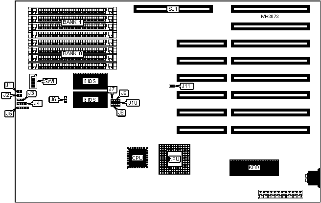Note: In order to use 16MB memory, install memory card at SL1. Pins designated should be in the closed position. | |||||