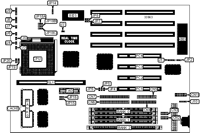 Note: Board accepts EDO memory. Board also accepts x 32 SIMMs.