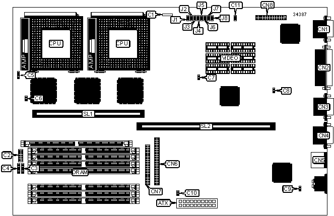 Floppy drive interface, IDE interface, parallel port, PS/2 mouse port, serial ports (2), VESA feature connector, VGA port, riser slot, cache slot