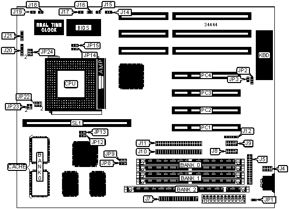 Note: Board accepts EDO memory. Board also accepts x 32 SIMMs. Banks 0 & 1 are interchangeable.