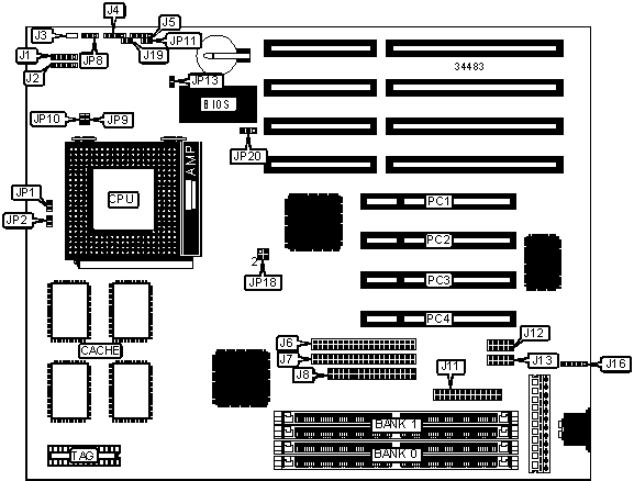 Note: Board accepts EDO memory. Banks are interchangeable.