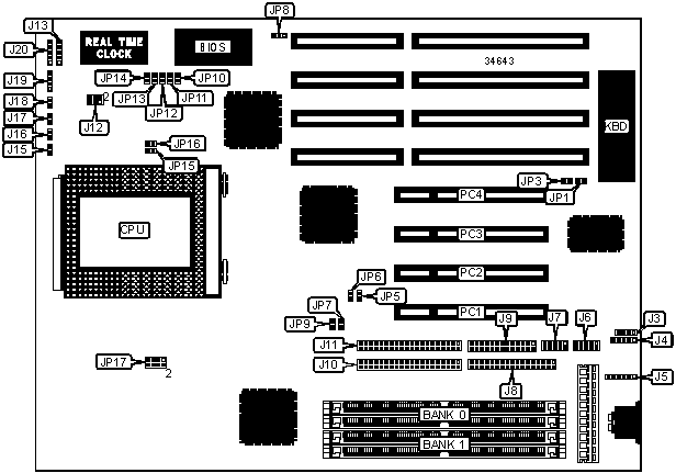 Note: Board accepts EDO memory. Board also accepts x 32 SIMMs.