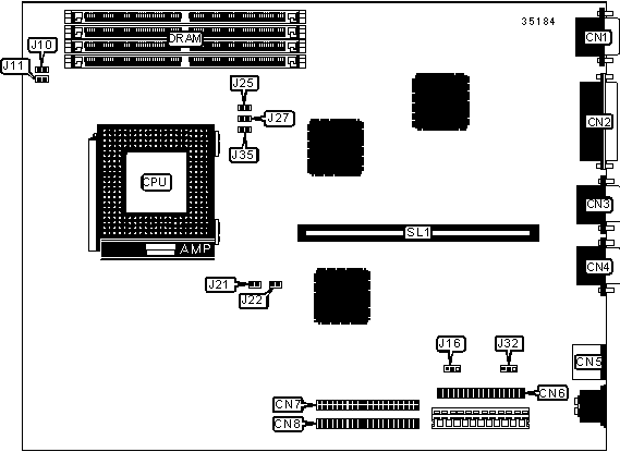 Note: Board is factory installed with 256KB cache. The location is unidentified. |