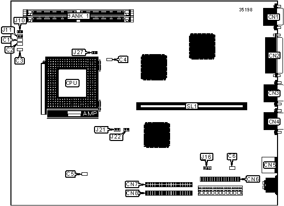 Note: Board is factory installed with 256KB cache. The location is unidentified. |