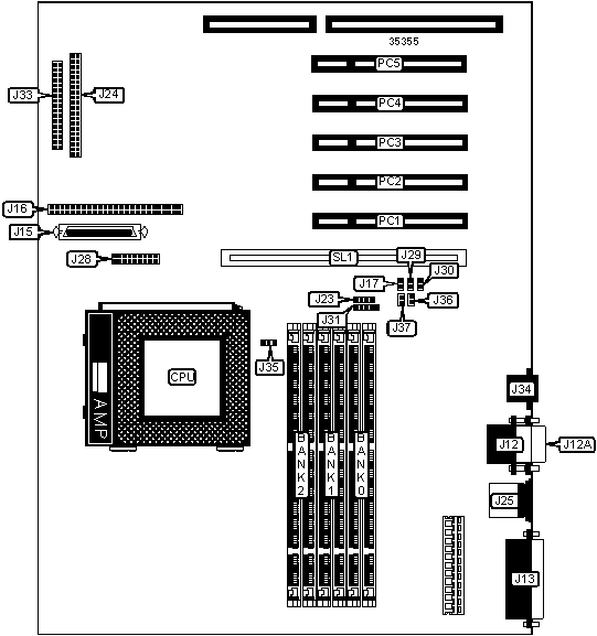 64-bit PCI slot, 32-bit PCI slots (5), Ethernet 10/100BaseT connector, floppy drive interface, IDE interface, SCSI interface, Wide Ultra SCSI interface, parallel port, PS/2 mouse port, serial ports (2)