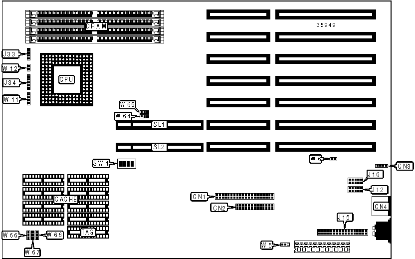 32-bit VESA local bus slots (2), floppy drive interface, IDE interface, parallel port, PS/2 mouse port, serial ports (2)