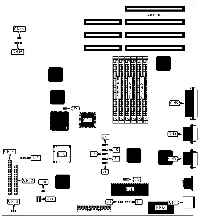 Parallel port, serial port, floppy drive interface, IDE interface, bus mouse port, VGA port