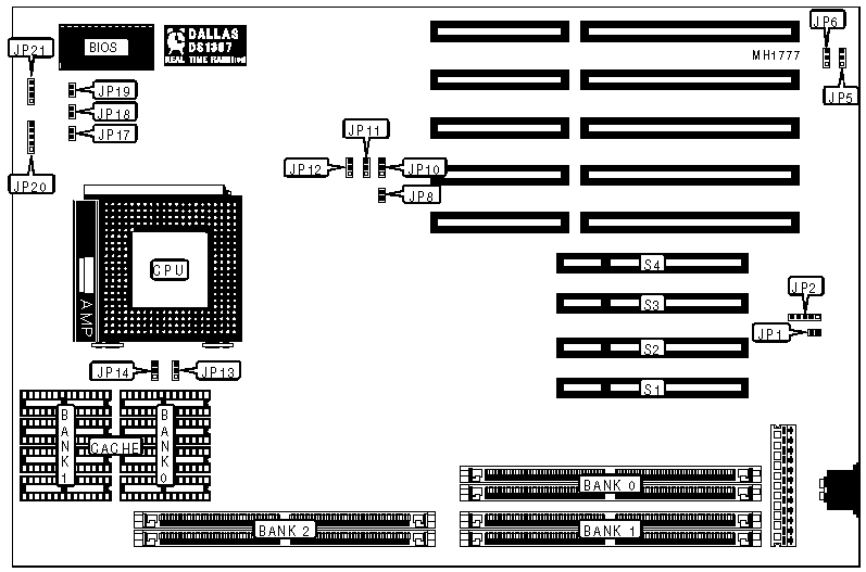 Note: There are three jumpers to be set for the PCI interrupt connection. When an ISA IRQ is connected to the PCI bus, that IRQ is unavailable to the ISA bus. | ||||