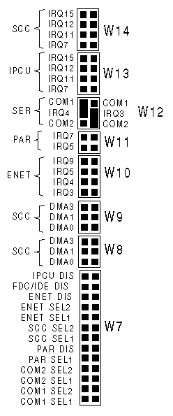 ONLY ONE CARD IN A GIVEN SEGMENT OF THE ABOVE BACKPLANES MAY HAVE ITS AT BUS JUMPER INSTALLED AT W4. IF MORE THEN ONE CARD HAS W4 INSTALLED DAMAGE WILL OCCUR. |