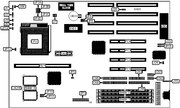 Note: Board accepts EDO memory. Board also accepts x 32 SIMMs. Banks are interchangeable.