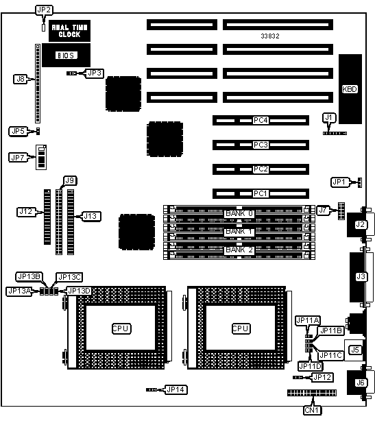 Note: Board accepts EDO memory. Board also accepts x 32 SIMMs.