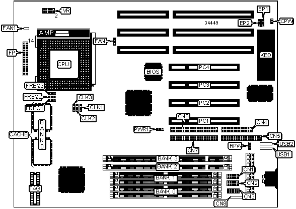 Note: Board accepts EDO memory. Do not install DIMMs & SIMMs at the same time.