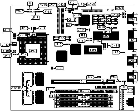 Note: Board accepts EDO memory. Board also accepts x 32 SIMMs. | ||