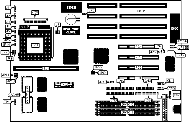 Note: Board accepts EDO memory. Board also accepts x 32 SIMMs. | ||