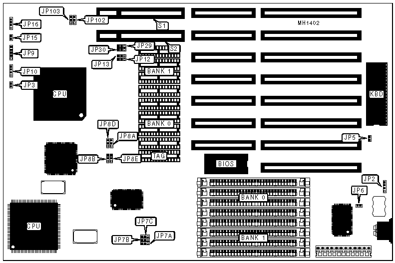 Note:JP102 controls VESA Bus wait states. JP103 controls VESA bus speed | |||||
