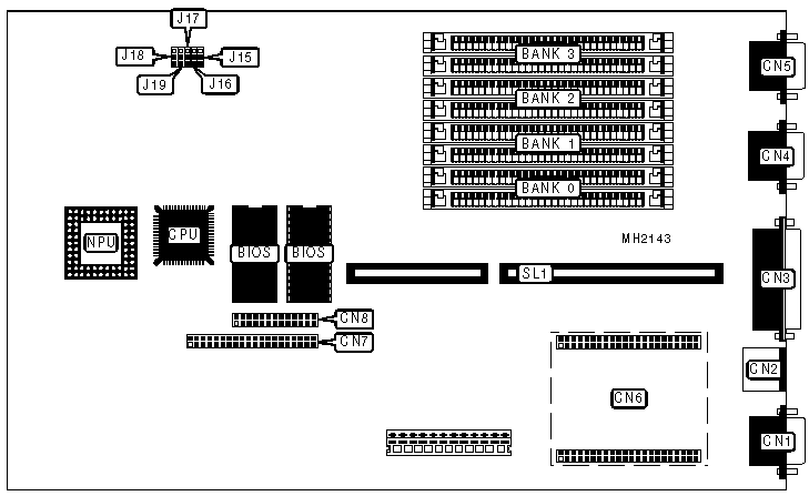 Floppy drive interface, IDE interface, parallel port, PS/2 mouse port, serial ports (2), VGA port