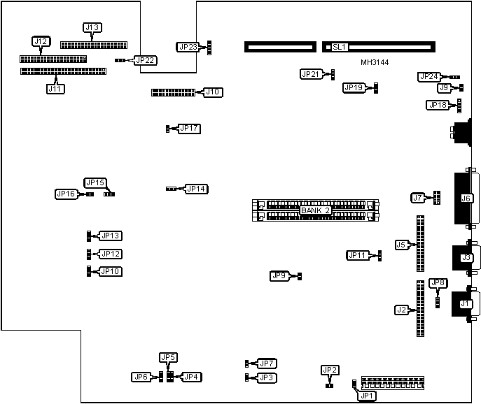Note: Bank 0 is factory installed and is not configurable. The location of Banks 0 & 1 are unidentified. Bank 1 uses a proprietary SIMM module.