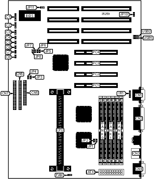 Note: 256KB/512KB cache is located on the Pentium II CPU. |