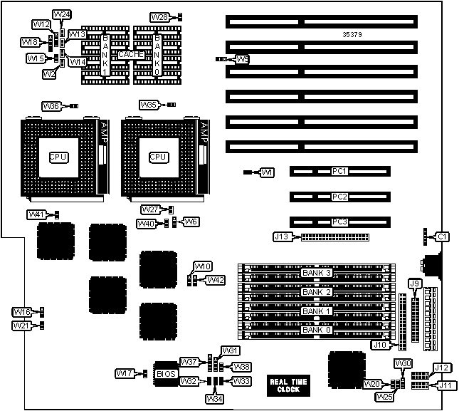 32-bit PCI slots (3), floppy drive interface, IDE interface, parallel port, PS/2 mouse port, serial ports (2) |