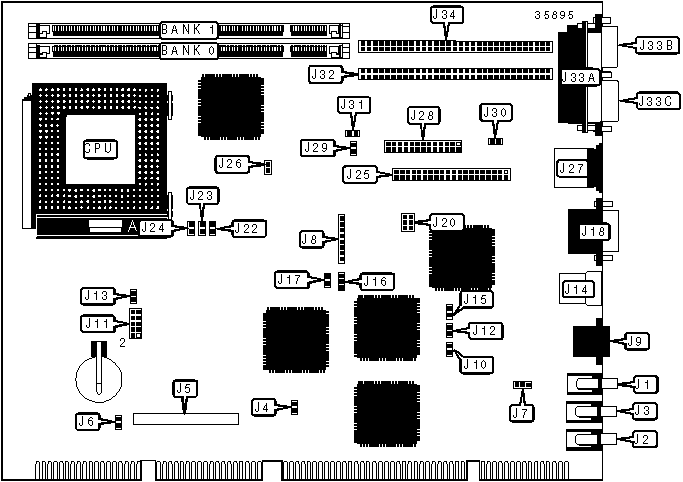 Ethernet 10BaseT connector, floppy drive interface, parallel port, PS/2 mouse port, serial ports (2), VGA feature connector, VGA port, USB connector, line in, line out, microphone in