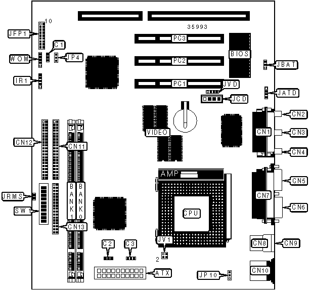 32-bit PCI slots (3), floppy drive interface, game/MIDI port, IDE interfaces (2), parallel port, PS/2 mouse port, serial port, VGA port, IR connector, USB connectors (2), ATX power connector, line in, line out, microphone in, audio in – CD-ROM, wake on LAN connector, wake on modem connector |