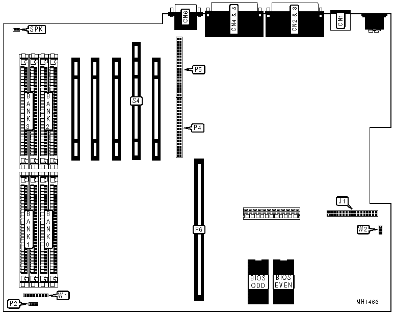 16 bit MCA bus slot with video extension, CPU card, floppy drive interface, MCA hard drive interface, parallel ports (2), PS/2 mouse port, serial ports (2), VGA port. |