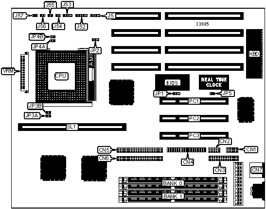 32-bit PCI slots (3), floppy drive interface, IDE interfaces (2), parallel port, PS/2 mouse port, serial ports (2), cache slot, VRM connector